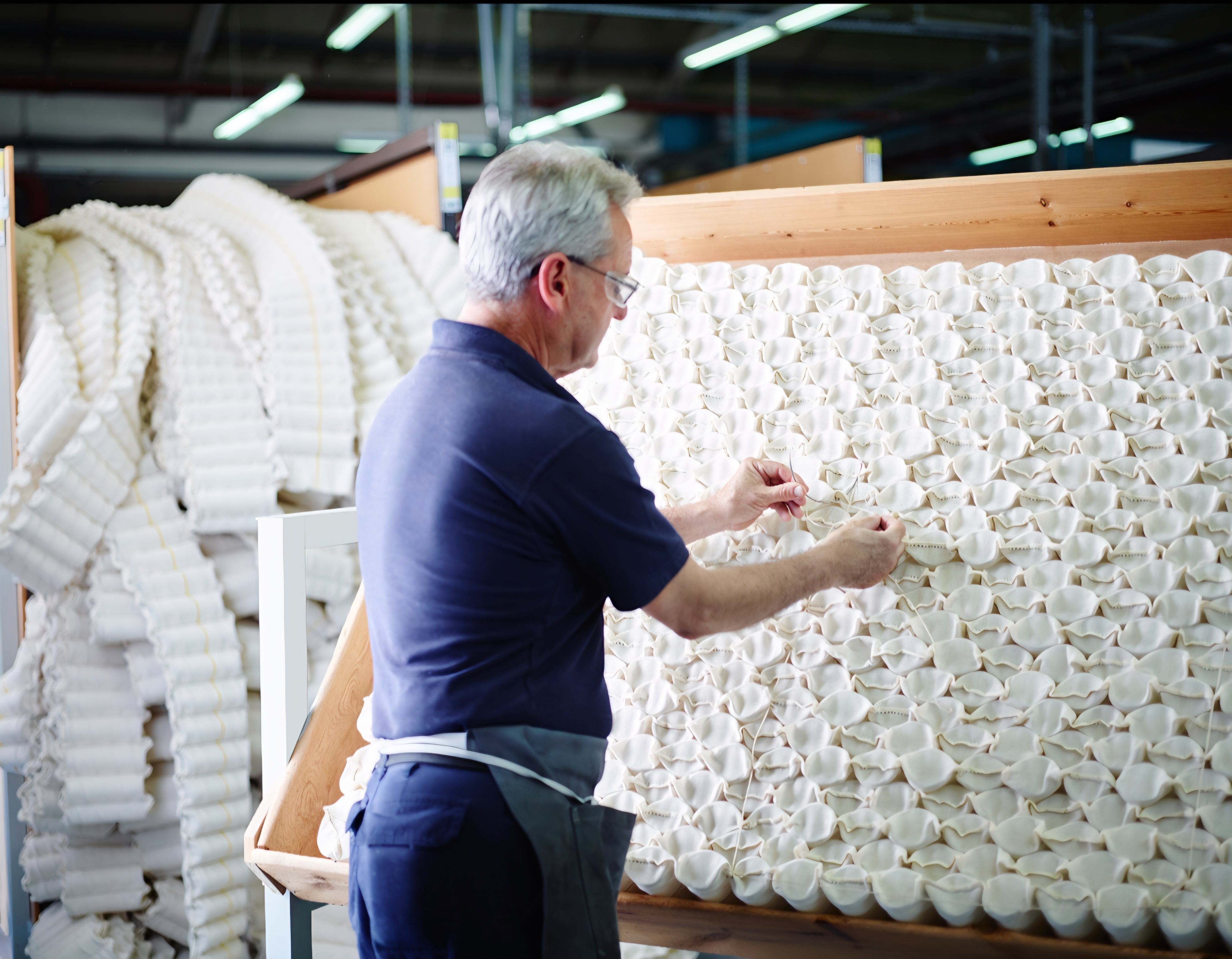 Siden 1901 har hver Vispring-madrass begynt med fjærene — håndlaget gjennom ni presise bevegelser og stille konsentrasjon for å sikre at de yter like godt i årevis.